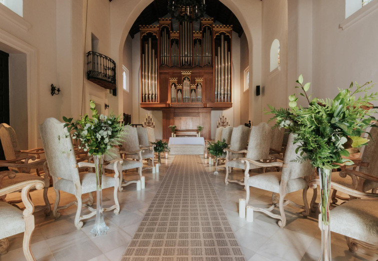 Der magischste Raum der Finca La Bobadilla: Diese nicht geweihte Kapelle beherbergt einen außergewöhnlichen Schatz – die größte privatbesessene Orgel Europas. Hohe Decken und lichtdurchflutete Glasfenster schaffen eine einzigartige Atmosphäre und machen sie zu einem unvergleichlichen Ort für Hochzeiten und besondere Feiern.